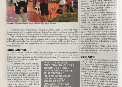 He was the pioneer and master trainer of SAGIP K9 Rescue in U.P Diliman.  He is now a consultant for Silungan Animal Shelter (www.silungan.com) in Tagaytay and conducts Canine Behavior classes at Guang Ming College.